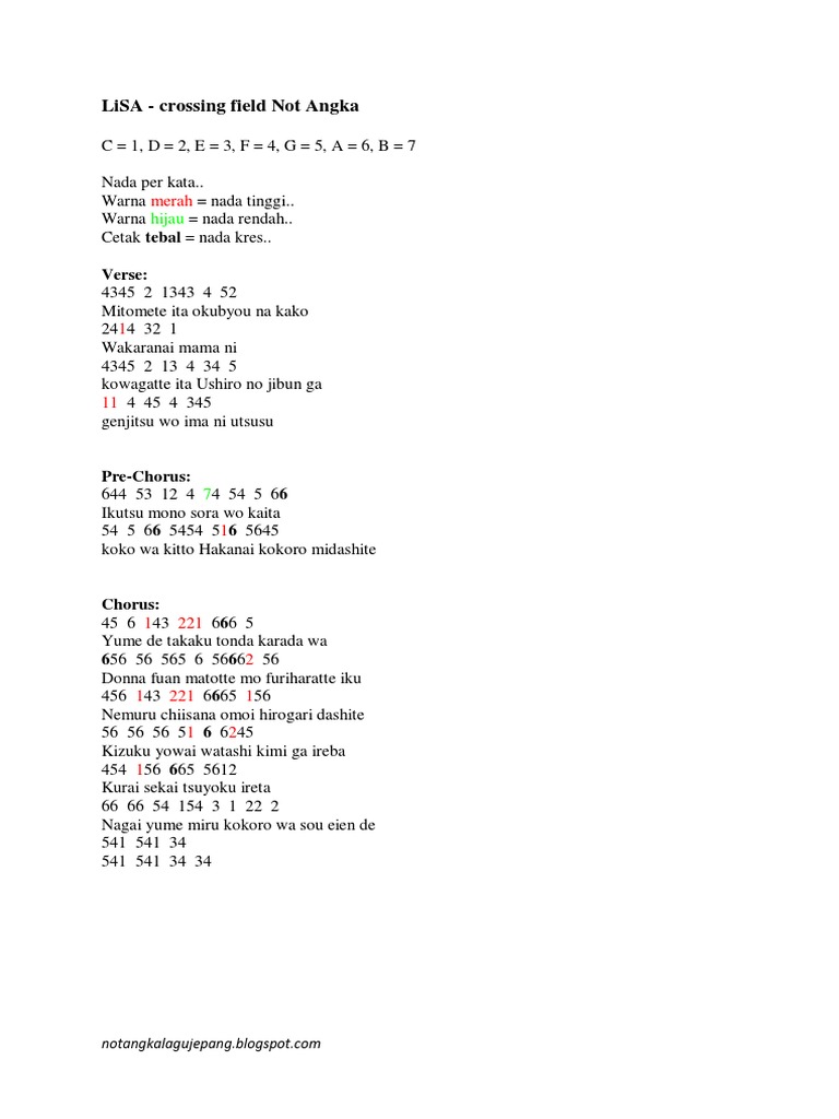 Crossing Field Lisa Sword Art Online Opening Theme Lyrics And Notes For Lyre Violin Recorder Kalimba Flute Etc